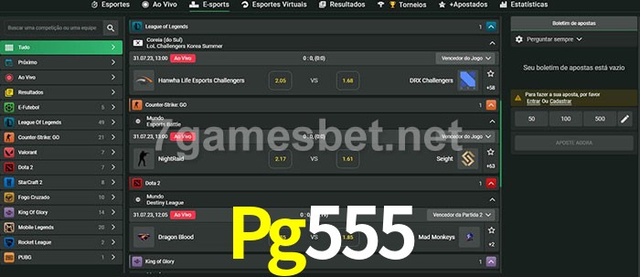 O Pg555 oferece uma grande seleção de opções de apostas em e-sports com probabilidades competitivas